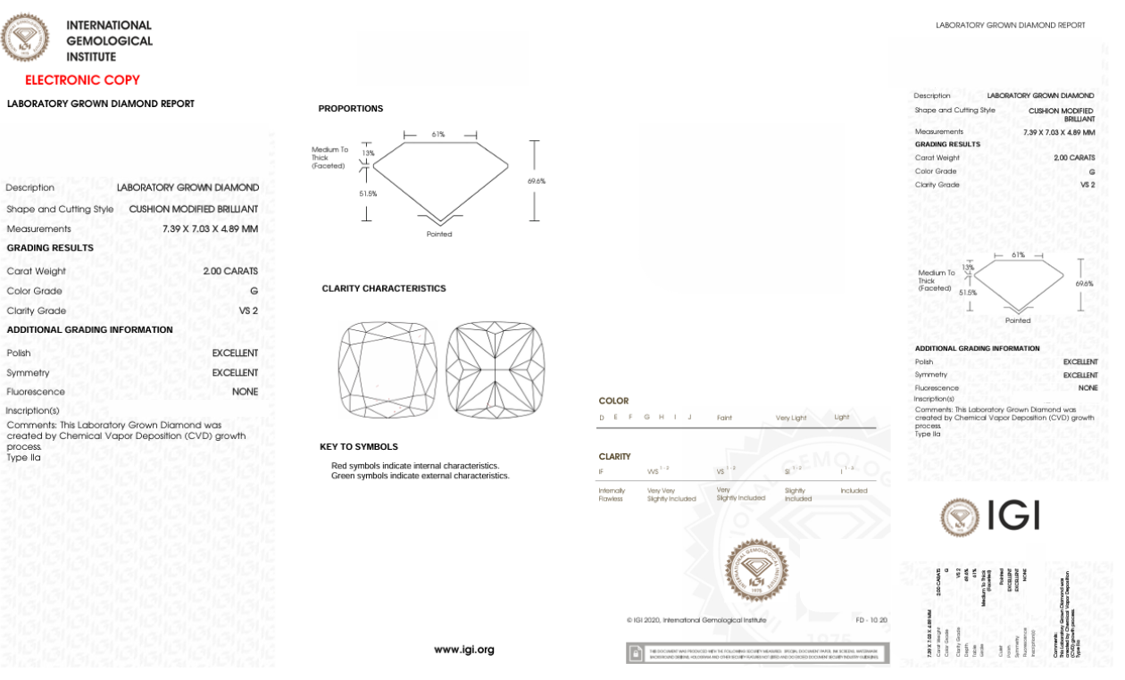 DCS124 - X-117-349 Cushion-S diamond IGI lab - Grown 2 Carat
