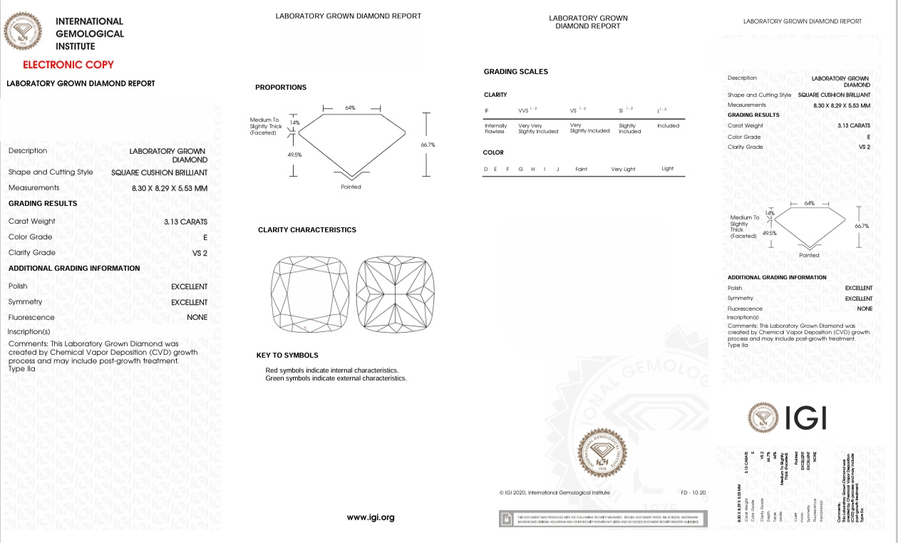 DCS15 - X-94-234 Cushion-S diamond IGI lab - Grown 3.13 Carat