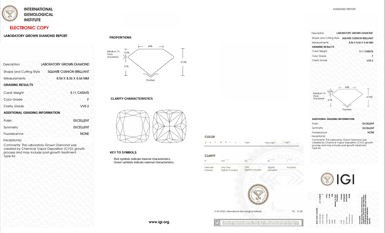 DCS18 - X-100-196 Cushion-S diamond IGI lab - Grown 3.11 Carat