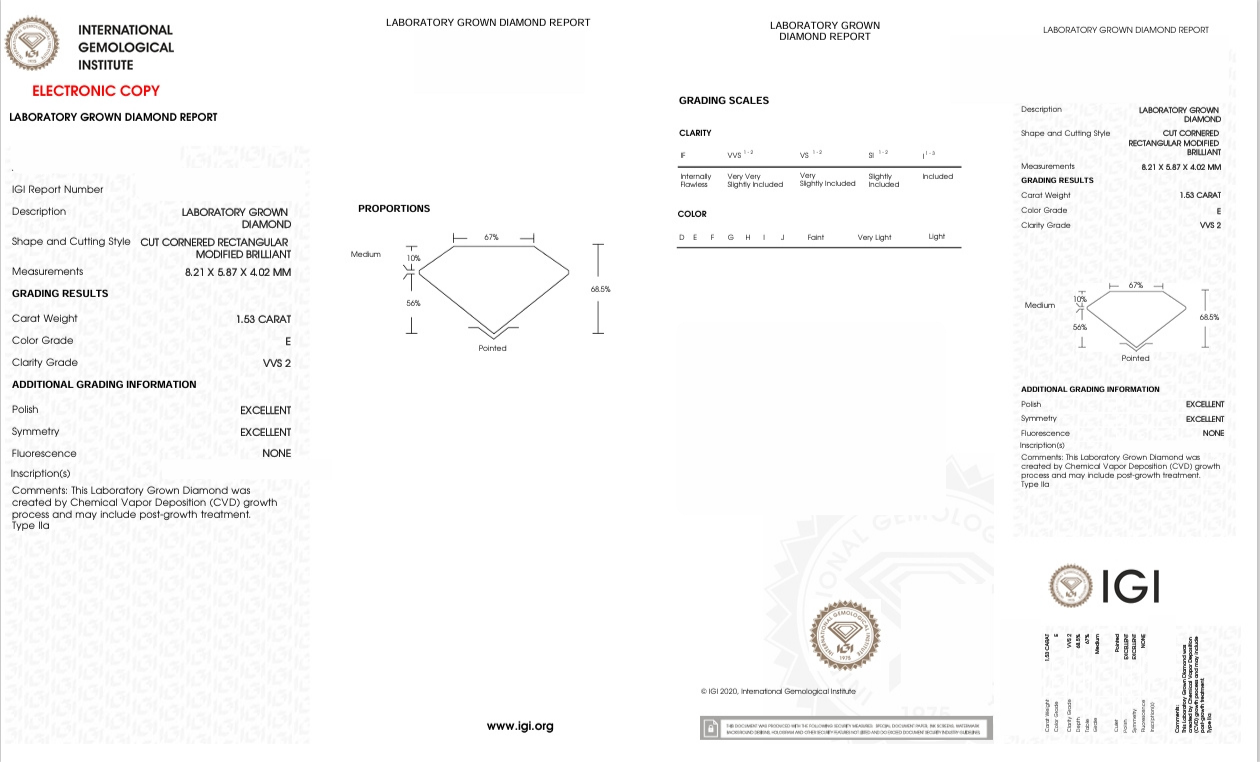 DRT113 - X-102-105 Radiant Diamond IGI Lab - Grown 1.53 Carat