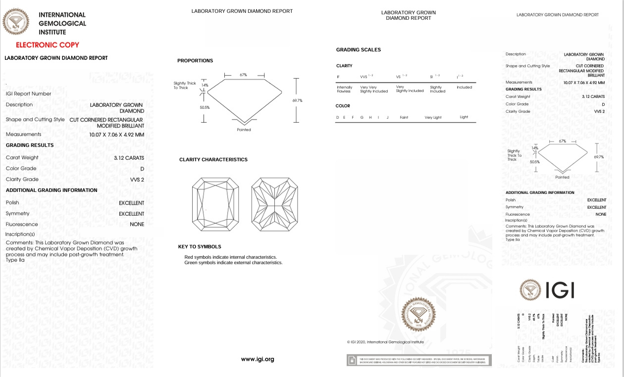 DRT17 - X-98-117 Radiant Diamond IGI Lab - Grown 3.12 Carat