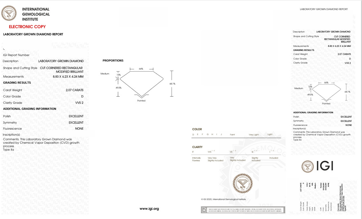 DRT97 - X-105-187 Radiant Diamond IGI Lab - Grown 2.07 Carat